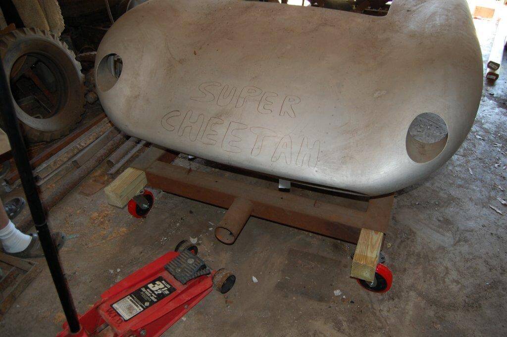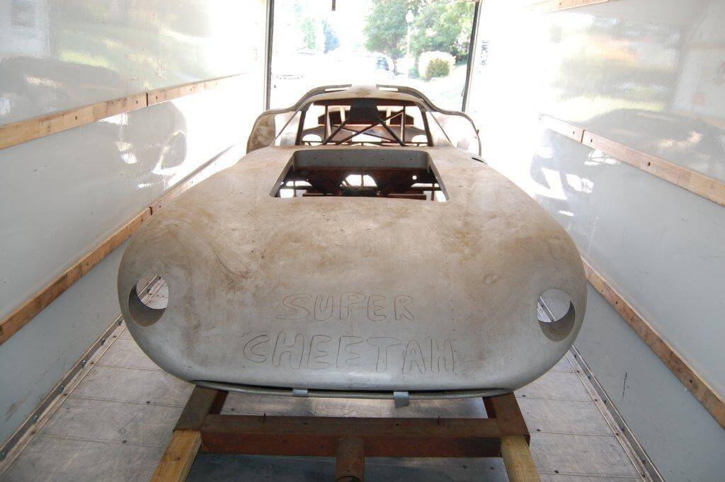 Thomas used pieces from this car to assist in producing 1965 Super Cheetah Bonnet Cowl Roll Bar. #002 was purchased back from CEC Funded by Thomas Friedkin it was raced a few times and then damaged at Riverside and what ever good aluminum pieces were usable were then also used to finish the body of the 1965 Model Super Cheetah.