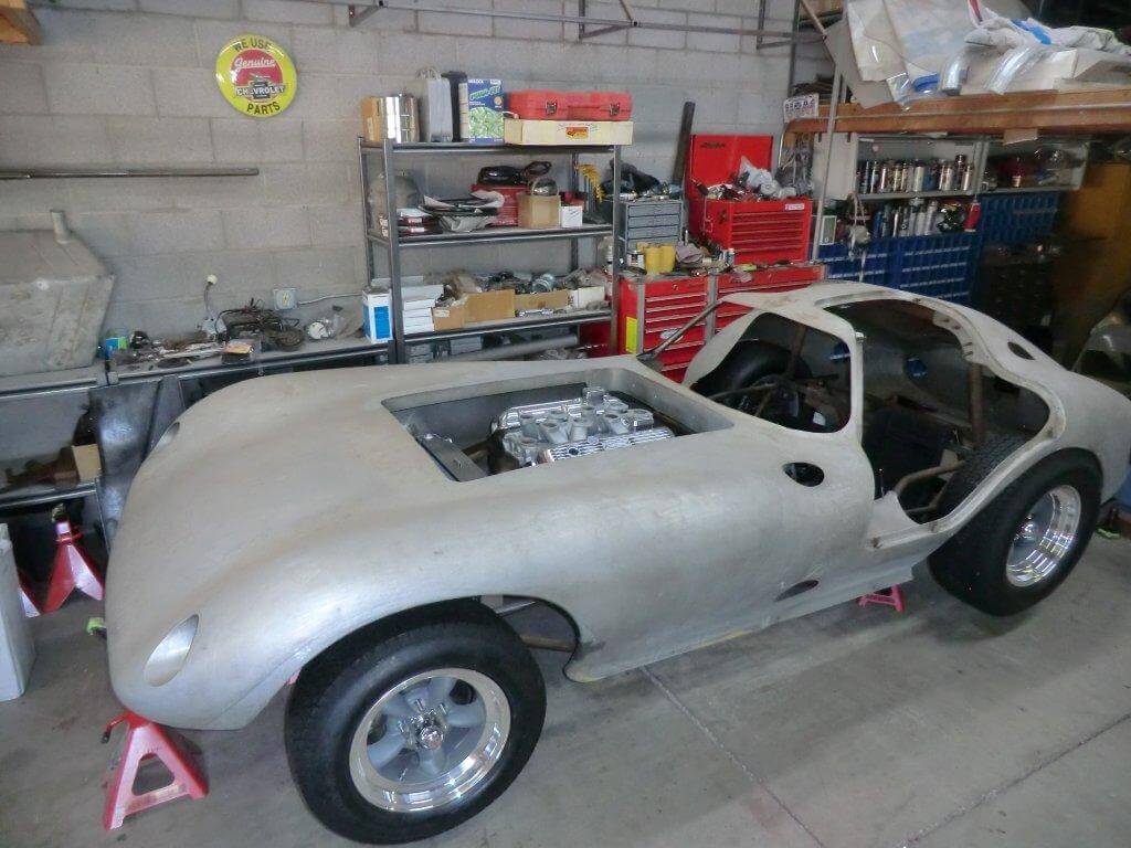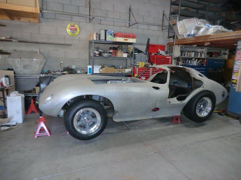The 1965 alloy body is in amazing condition, work was started early 1964 with wooden body buck made to produce new wider-longer style Cheetah. Well here is what will drive all the cheetahs collectors and enthusiast a little crazy. Chevrolet terminated the Cheetah project may, xx, of 1964. By this time Bill Thomas Race Cars had built 2 1963 alloy body 1st generation Cheetahs #001 and #002, Chevrolet evaluation list testing was completed on #001, when Chevrolet was done with #001 Bill Thomas bought it back. The #002 cheetahs body was wrecked at riverside and re-bodied in fiberglass, the only aluminum body parts that exist from that wreck are the left and right alloy doors with a little riverside red paint on the underside.